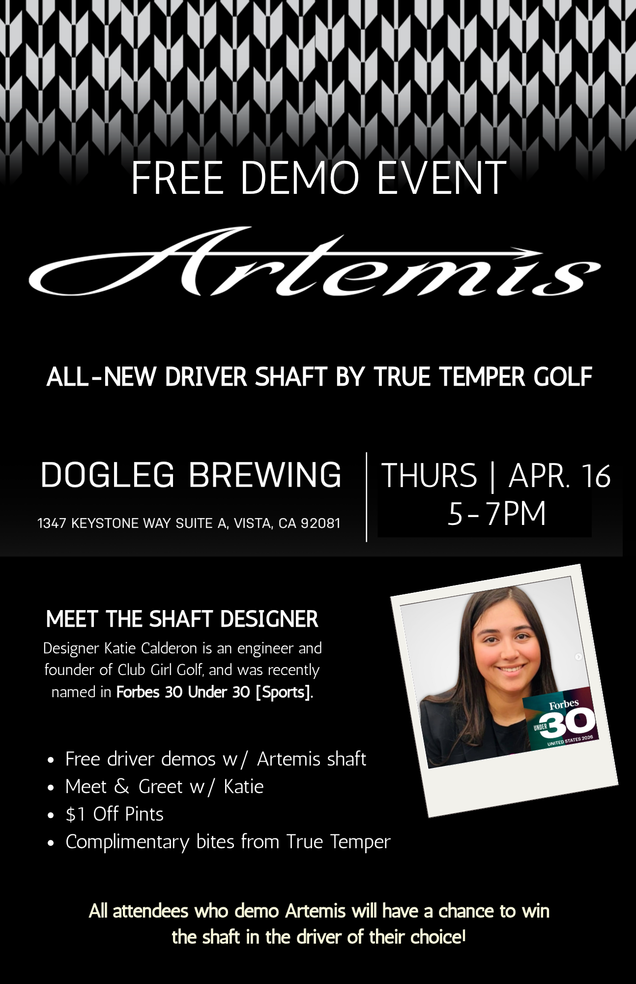 Swing by to try the all-new True Temper women's shaft Artemis. Test it out in the golf simulator - all skill levels welcome! PLUS meet the designer
